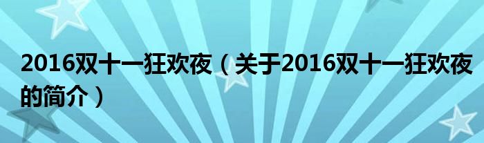 本文關(guān)于2016雙十一狂歡夜的簡介就講解完畢,希望對(duì)大家有所幫助。