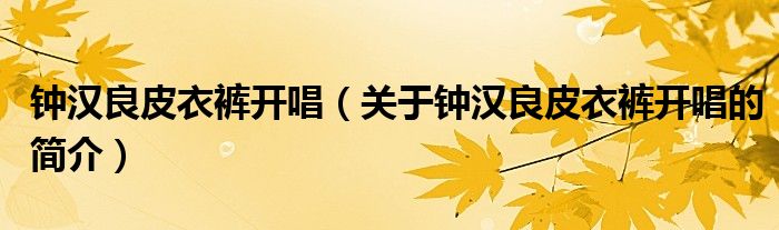 大家好,鐘漢良皮衣褲開(kāi)唱,關(guān)于鐘漢良皮衣褲開(kāi)唱的簡(jiǎn)介很多人還不知道,現(xiàn)在讓我們一起來(lái)看看吧!