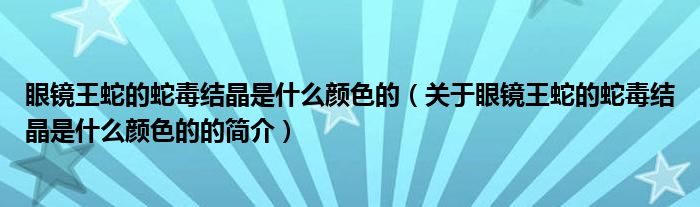 本文關于眼鏡王蛇的蛇毒結晶是什么顏色的的簡介就講解完畢,希望對大家有所幫助。
