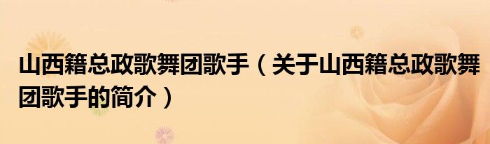 本文關于山西籍總政歌舞團歌手的簡介就講解完畢,希望對大家有所幫助。