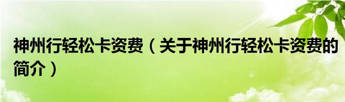 本文關于神州行輕松卡資費的簡介就講解完畢,希望對大家有所幫助。