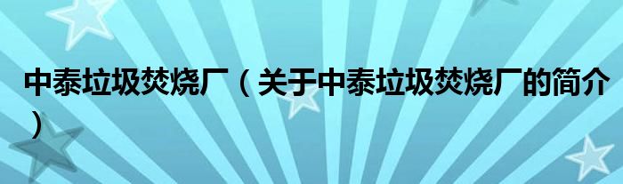 大家好,中泰垃圾焚燒廠,關于中泰垃圾焚燒廠的簡介很多人還不知道,現在讓我們一起來看看吧!