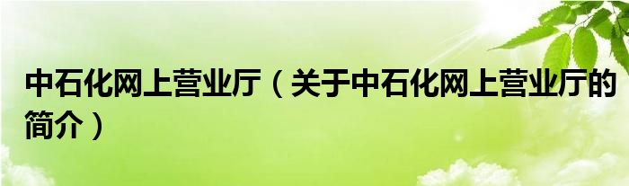 大家好,中石化網上營業(yè)廳,關于中石化網上營業(yè)廳的簡介很多人還不知道,現(xiàn)在讓我們一起來看看吧!