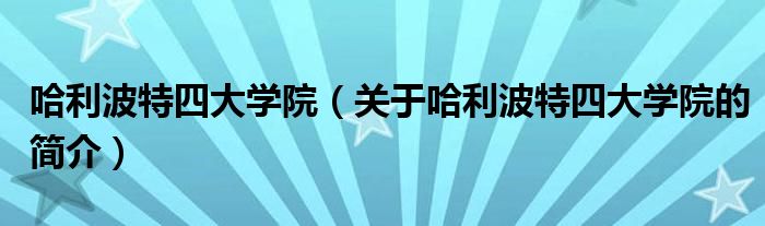 本文關于哈利波特四大學院的簡介就講解完畢,希望對大家有所幫助。