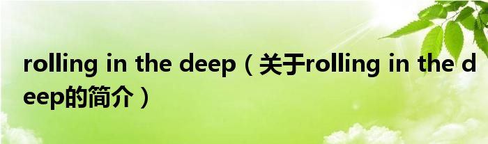 本文關(guān)于rolling in the deep的簡(jiǎn)介就講解完畢,希望對(duì)大家有所幫助。