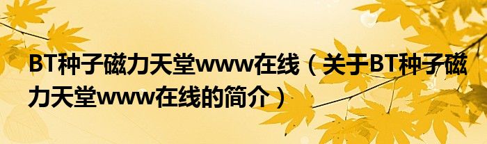 本文關(guān)于BT種子磁力天堂www在線的簡介就講解完畢,希望對大家有所幫助。