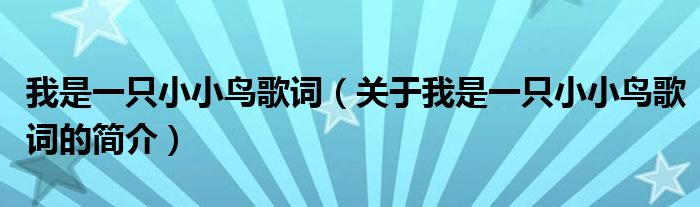 本文關(guān)于我是一只小小鳥歌詞的簡介就講解完畢,希望對大家有所幫助。