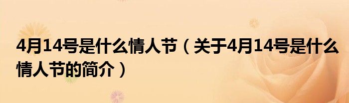 本文關(guān)于4月14號是什么情人節(jié)的簡介就講解完畢,希望對大家有所幫助。