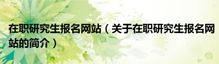 本文關(guān)于在職研究生報(bào)名網(wǎng)站的簡(jiǎn)介就講解完畢,希望對(duì)大家有所幫助。