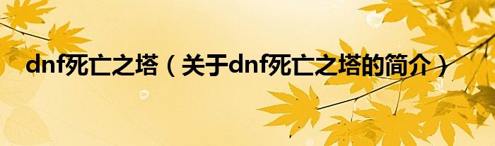 本文關于dnf死亡之塔的簡介就講解完畢,希望對大家有所幫助。