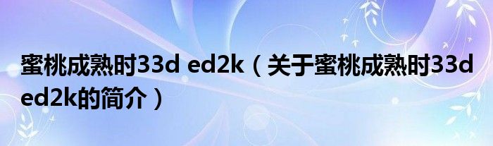 大家好,蜜桃成熟時33d ed2k,關于蜜桃成熟時33d ed2k的簡介很多人還不知道,現在讓我們一起來看看吧!