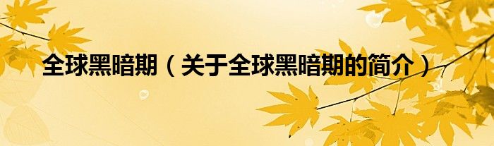 本文關于全球黑暗期的簡介就講解完畢,希望對大家有所幫助。