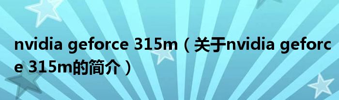 本文關(guān)于nvidia geforce 315m的簡介就講解完畢,希望對大家有所幫助。