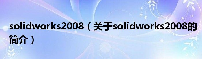 大家好,solidworks2008,關于solidworks2008的簡介很多人還不知道,現在讓我們一起來看看吧!