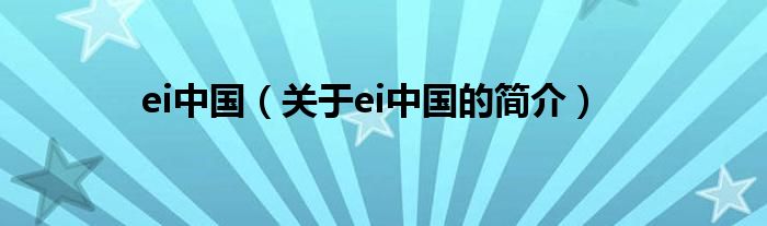 大家好,ei中國,關于ei中國的簡介很多人還不知道,現在讓我們一起來看看吧!