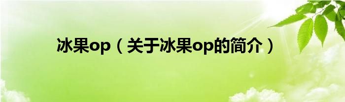 大家好,冰果op,關于冰果op的簡介很多人還不知道,現在讓我們一起來看看吧!