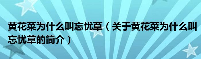 本文關于黃花菜為什么叫忘憂草的簡介就講解完畢,希望對大家有所幫助。