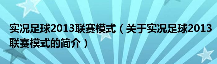 本文關于實況足球2013聯賽模式的簡介就講解完畢,希望對大家有所幫助。