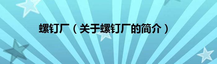 本文關于螺釘廠的簡介就講解完畢,希望對大家有所幫助。