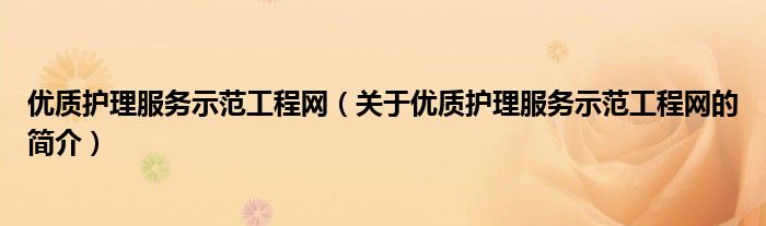 本文關于優質護理服務示范工程網的簡介就講解完畢,希望對大家有所幫助。