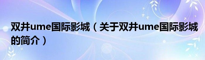 本文關于雙井ume國際影城的簡介就講解完畢,希望對大家有所幫助。