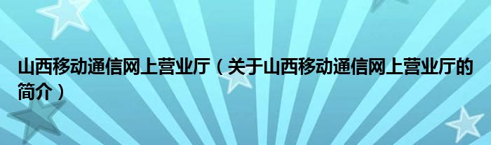 大家好,山西移動通信網上營業廳,關于山西移動通信網上營業廳的簡介很多人還不知道,現在讓我們一起來看看吧!