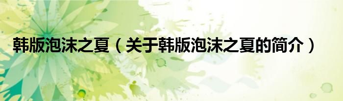本文關(guān)于韓版泡沫之夏的簡介就講解完畢,希望對大家有所幫助。