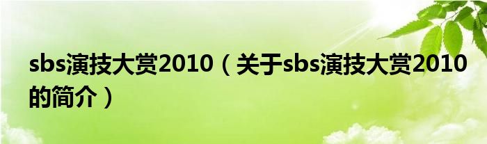 本文關于sbs演技大賞2010的簡介就講解完畢,希望對大家有所幫助。