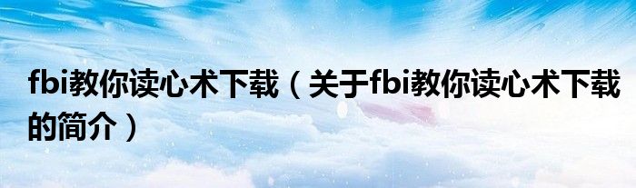 本文關于fbi教你讀心術下載的簡介就講解完畢,希望對大家有所幫助。