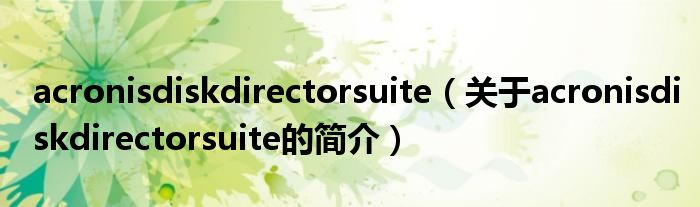 大家好,acronisdiskdirectorsuite,關(guān)于acronisdiskdirectorsuite的簡介很多人還不知道,現(xiàn)在讓我們一起來看看吧!