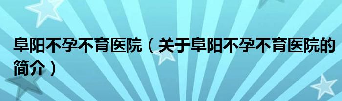 本文關于阜陽不孕不育醫院的簡介就講解完畢,希望對大家有所幫助。