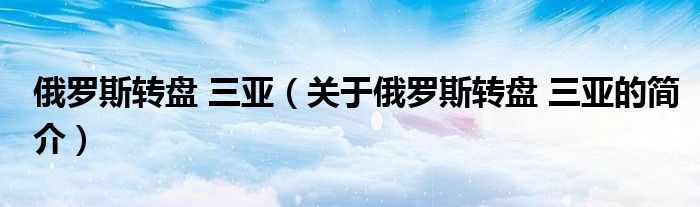 本文關于俄羅斯轉盤 三亞的簡介就講解完畢,希望對大家有所幫助。