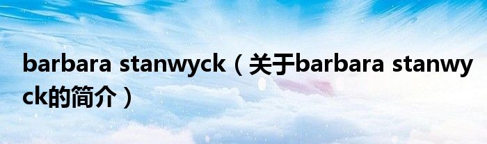 大家好,barbara stanwyck,關于barbara stanwyck的簡介很多人還不知道,現(xiàn)在讓我們一起來看看吧!