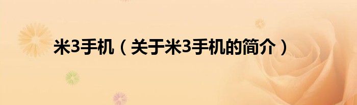 大家好,米3手機,關(guān)于米3手機的簡介很多人還不知道,現(xiàn)在讓我們一起來看看吧!