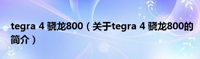 大家好,tegra 4 驍龍800,關(guān)于tegra 4 驍龍800的簡介很多人還不知道,現(xiàn)在讓我們一起來看看吧!