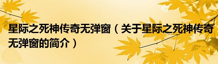 本文關于星際之死神傳奇無彈窗的簡介就講解完畢,希望對大家有所幫助。