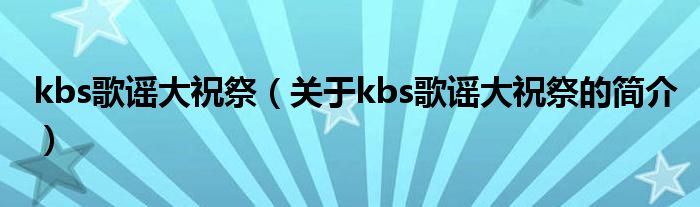 本文關于kbs歌謠大祝祭的簡介就講解完畢,希望對大家有所幫助。
