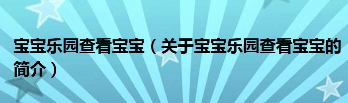 本文關于寶寶樂園查看寶寶的簡介就講解完畢,希望對大家有所幫助。