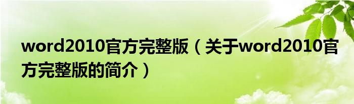 本文關于word2010官方完整版的簡介就講解完畢,希望對大家有所幫助。
