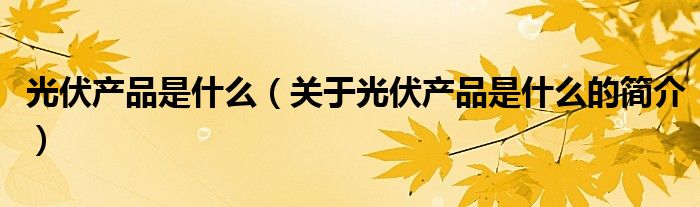 本文關于光伏產品是什么的簡介就講解完畢,希望對大家有所幫助。