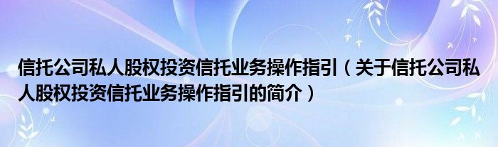 本文關于信托公司私人股權投資信托業務操作指引的簡介就講解完畢,希望對大家有所幫助。