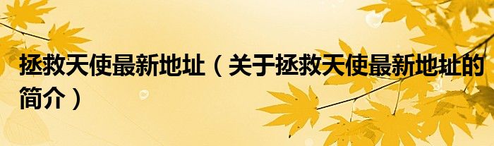大家好,拯救天使最新地址,關(guān)于拯救天使最新地址的簡(jiǎn)介很多人還不知道,現(xiàn)在讓我們一起來(lái)看看吧!