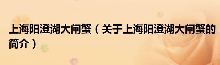 大家好,上海陽澄湖大閘蟹,關(guān)于上海陽澄湖大閘蟹的簡介很多人還不知道,現(xiàn)在讓我們一起來看看吧!
