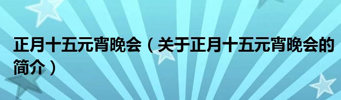 本文關(guān)于正月十五元宵晚會(huì)的簡(jiǎn)介就講解完畢,希望對(duì)大家有所幫助。