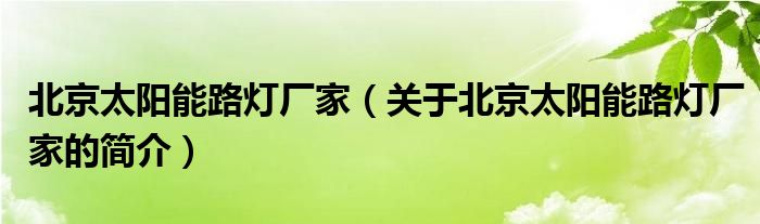 本文關于北京太陽能路燈廠家的簡介就講解完畢,希望對大家有所幫助。