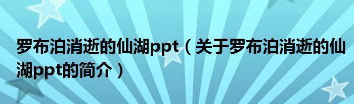 本文關于羅布泊消逝的仙湖ppt的簡介就講解完畢,希望對大家有所幫助。