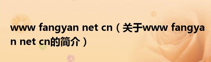 本文關于www fangyan net cn的簡介就講解完畢,希望對大家有所幫助。