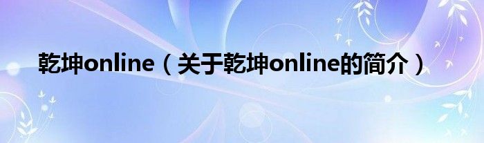 本文關于乾坤online的簡介就講解完畢,希望對大家有所幫助。