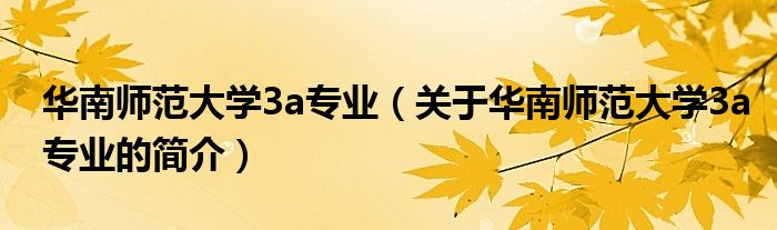 本文關于華南師范大學3a專業的簡介就講解完畢,希望對大家有所幫助。
