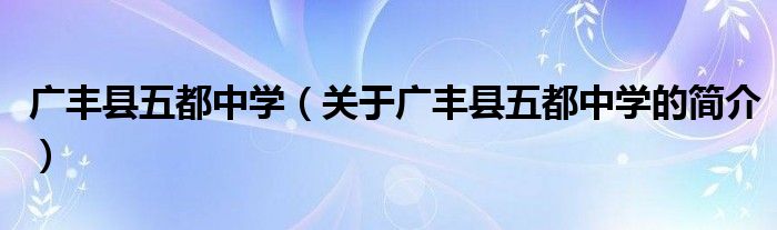 本文關于廣豐縣五都中學的簡介就講解完畢,希望對大家有所幫助。